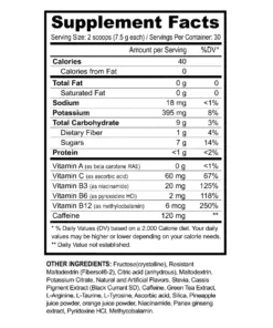 A.C.T.™ represents Advanced Cellular Therapy. A.C.T.™ Energy drinks feature a unique blend of effective, all-natural ingredients that collaborate at the cellular level. This results in a significant mental and physical enhancement that you will begin to feel within minutes and that can last for hours. Each canister of A.C.T. Original contains 450 g. Ingredients include: Vitamin A, Vitamin C, Vitamin B3, Vitamin B6, Vitamin B12, Crystalline Fructose, Maltodextrin, Fibersol 2 Maltodextrin, Potassium Citrate, Natural Flavors, Beet Powder, Guarana Seed Extract, Citric Acid, Stevia, Cassis Pigment Extract (Blackcurrant S.D.), Green Tea 50% EGCG, L-Arginine, Taurine, L-Tyrosine, Dry Mandarin Juice, Dry Orange Juice, Dry Raspberry Juice, Panax Ginseng Powder Extract.
