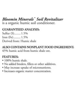Bloomin Minerals™ consists of fully natural humate soil conditioner and plant nourishment made from ancient plant minerals that are no longer present in agricultural and grazing soils.