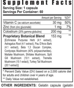 Immu-911™ provides extensive nutritional assistance for the immune system. It includes a variety of well-balanced, specifically targeted nutrients such as colostrum, beta-1 3-D glucan, mycelial mass mushrooms, astragalus, echinacea, vitamin C, zinc, and pau d’arco to promote healthy immune function.*