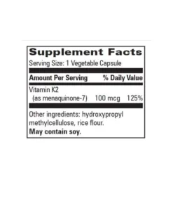 Ingredients: MenaQT Vitamin K2, hypromellose (vegetable capsule), rice flour.
